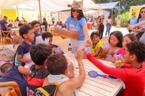 A iniciativa, já na terceira edição, reuniu 300 crianças no espaço do festival. A chefe-executiva de Políticas Sociais, Talita Mattosinhos, lembrou que a parceria com o Na Praia existe desde 2021, por meio do projeto Com Solidariedade Salva, que arrecada alimentos da meia-entrada social. “Trazemos crianças e, agora, também idosos para cá”, relatou. “Este ano serão seis dias de atividades, sempre no período da manhã, das 9h ao meio-dia. Teremos um dia muito especial, reservado para 300 idosos”.